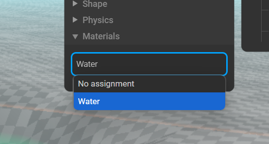 Finally, we add this normal value to the `standardMaterial` function. To see the light shimmer on the water we need to also adjust the roughness value to a small number. You may need to move the camera around in the editor to see this effect.