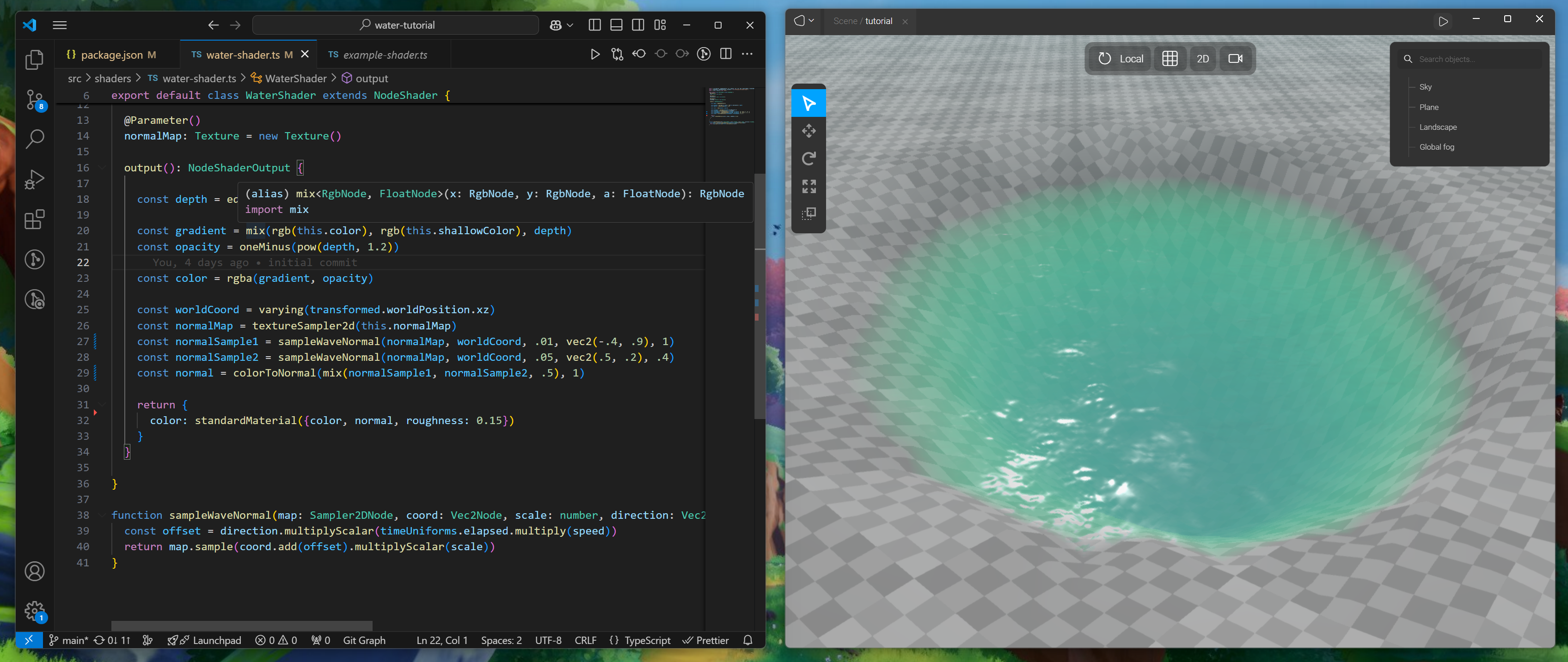 This tutorial will go over how to create a stylized water material using a custom shader.